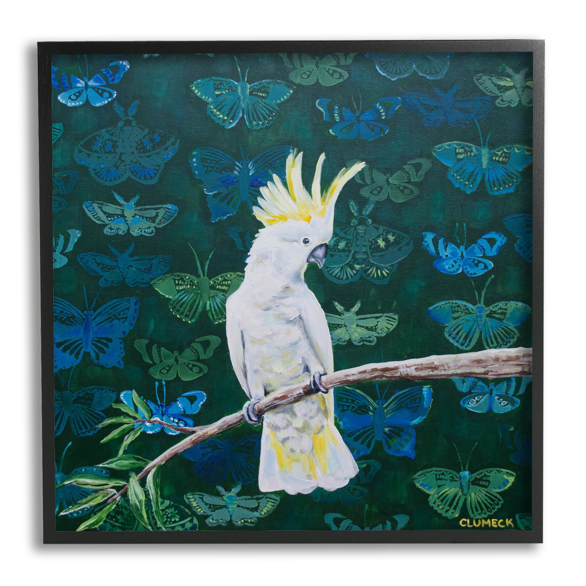 Stupell Industries Tropical White Yellow Parrot Perched Butterfly Print Pattern 24 X 24 Design By Alana Clumeck Walmart Com